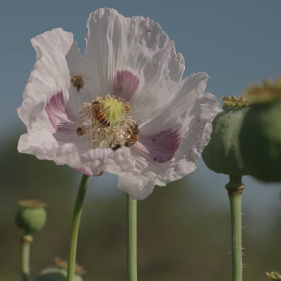 A rare variety. This variety has a sturdy stem and large, showy white blooms. It’s extra fun to harvest, because the seed pods rattle when dry. The white seeds offer a delicious nutty flavor, perfect for muffins and bagels. Unlike many breadseed poppies, the Sokol has no vents in its seed heads, making seed collection easy—simply break open the pods to harvest. Grows well in full sun and well-drained soil and attracts pollinators, as you can see in my picture. Sokol poppy thrives with minimal care. Annual.